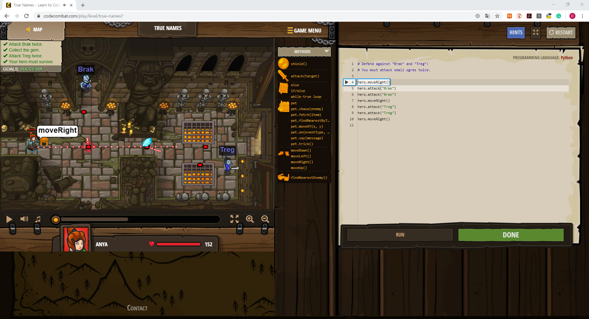1 hero.moveRight()