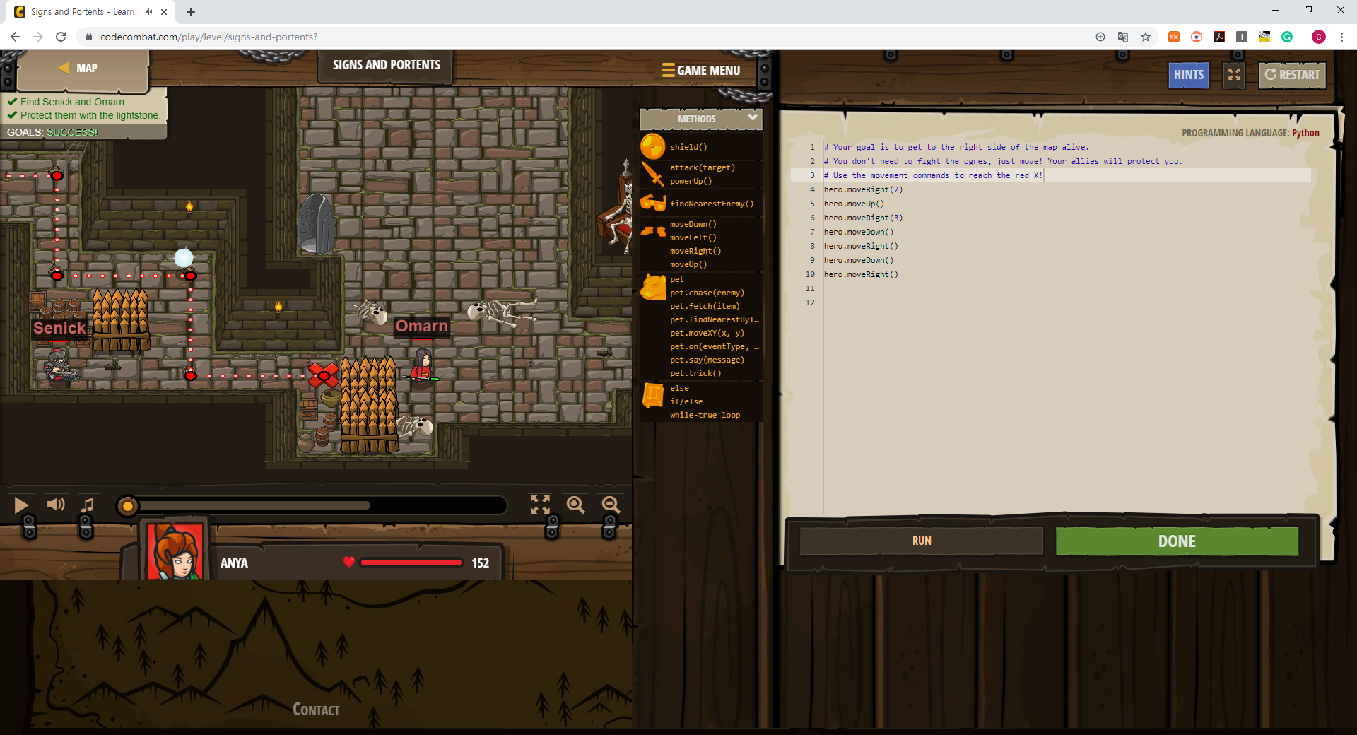 # 이동 명령은 빨간색 X를 향해서 이동하면 됩니다.